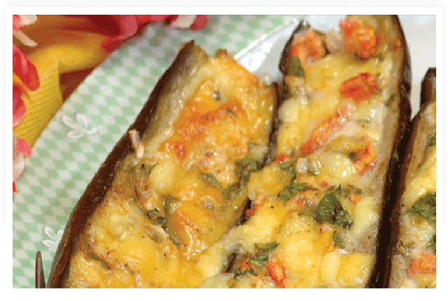 Tencereye su koyup tuz ilave edin. Patlıcanları kabuklarını soymadan uzunlamasına ortadan ikiye bölün. Kaynayan tuzlu suya atıp 5 dakika haşlayın. Haşlanan patlıcanları sudan çıkarıp suyunu süzün. Kaşıkla ortalarındaki etli kısmı hafifçe alıp yağlanmış fırın tepsisine dizin. Patlıcanın ortalarından çıkardığınız içleri ince ince kıyarak geniş bir kaseye alın, Kıyılmış içlerin içine rendelenmiş domates,  2 yumurta, ezilmiş beyaz peynir, kıyılmış maydanoz, zeytinyağı, hindistan cevizi rendesi, tuz ve karabiber ilave edip iyice karıştırın. Hazırlanan harcı patlıcanların içine doldurun. Üzerlerine galeta unu serperek 180 derece ısıtılmış fırında pişirin. Sıcak olarak servis yapın. AFİYET OLSUN